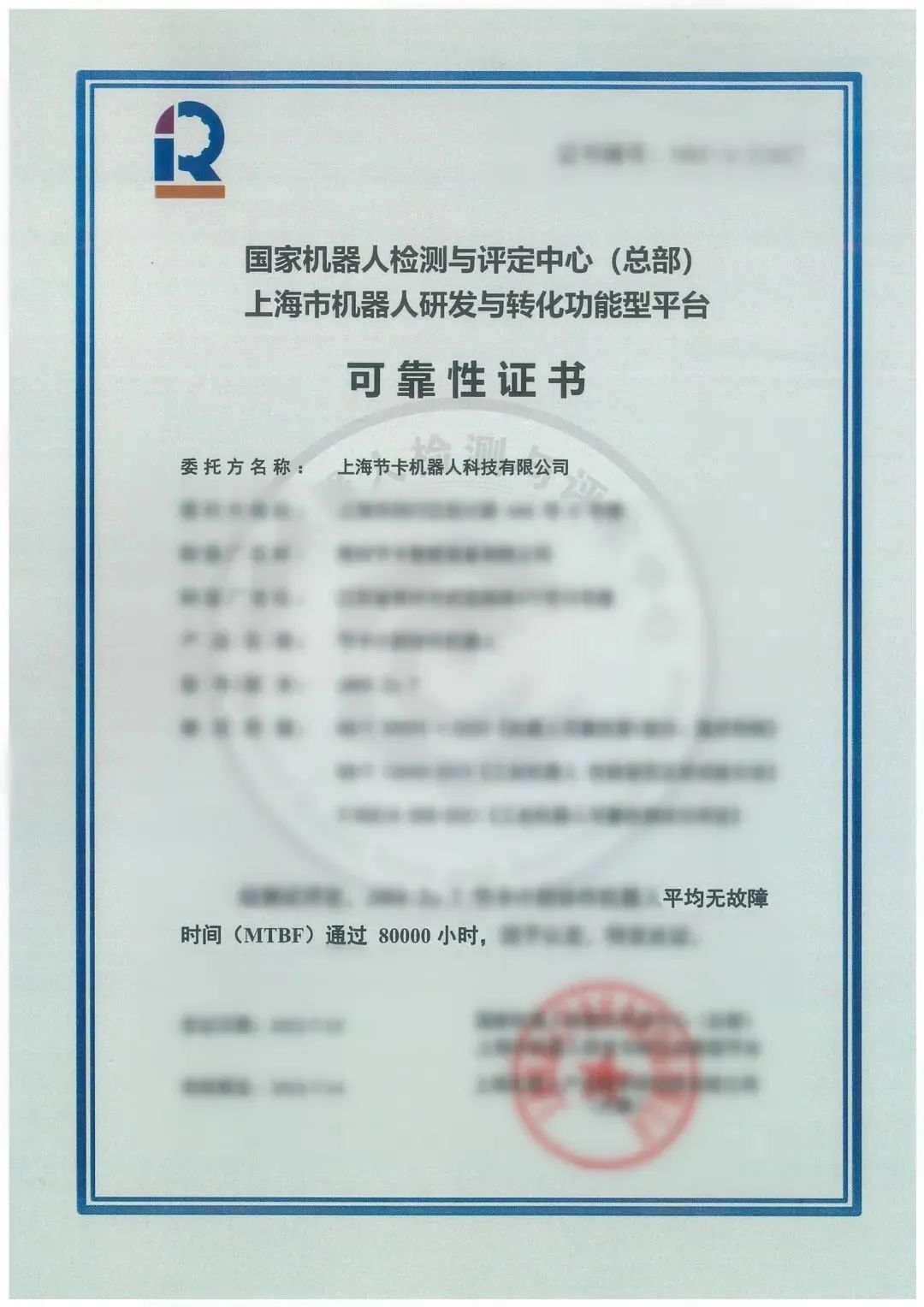 近日,上海节卡机器人科技有限公司(以下简称“节卡机器人”)顺利通过了jiuyou.com九游(中国)机器人有限公司官网的 MTBF 80000小时测评。